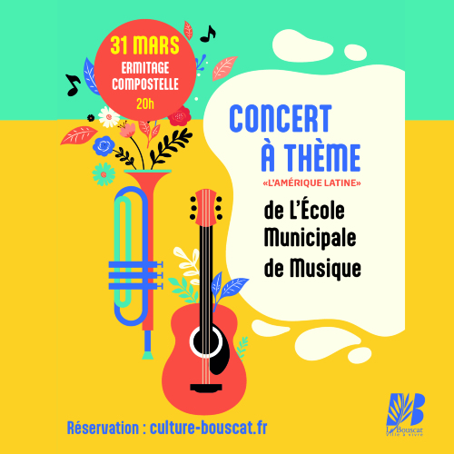 Display mapChaque année, élèves et enseignants de l'école municipale de musique vous propose un concert sur une thématique originale et dynamique. Pour cette saison 25/26, plongez au cœur des rythmes et des couleurs de l’Amérique latine ! Entre bossa nova, tango, musiques traditionnelles des Andes et mélodies ensoleillées, ce concert vous invite à un véritable voyage musical à travers un continent riche de cultures et d’émotions. Un moment vibrant, chaleureux et dépaysant… à ne pas manquer !